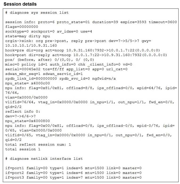 The exhibit shows the details of a session and the index numbers of some relevant interfaces on a