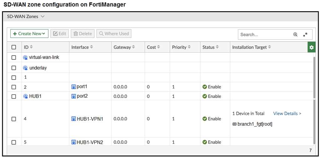associated SD-WAN rules to connect existing branches to the company hub device and apply the