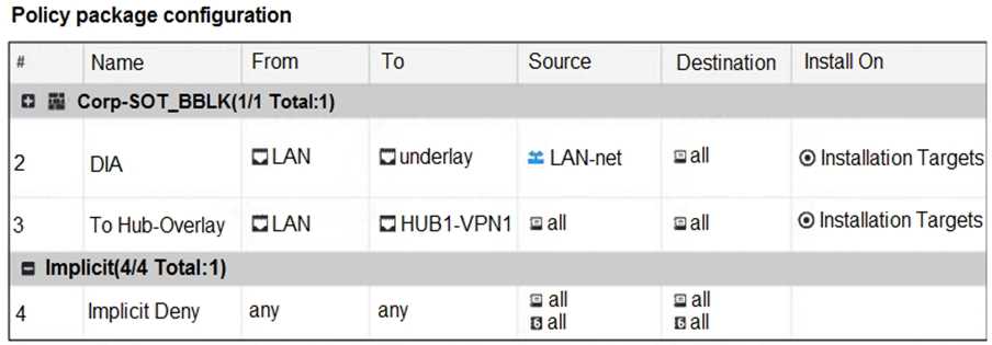 Policy 3 points traffic To = HUB1-VPN1, which is an SD-WAN member interface. In SD-WAN you must