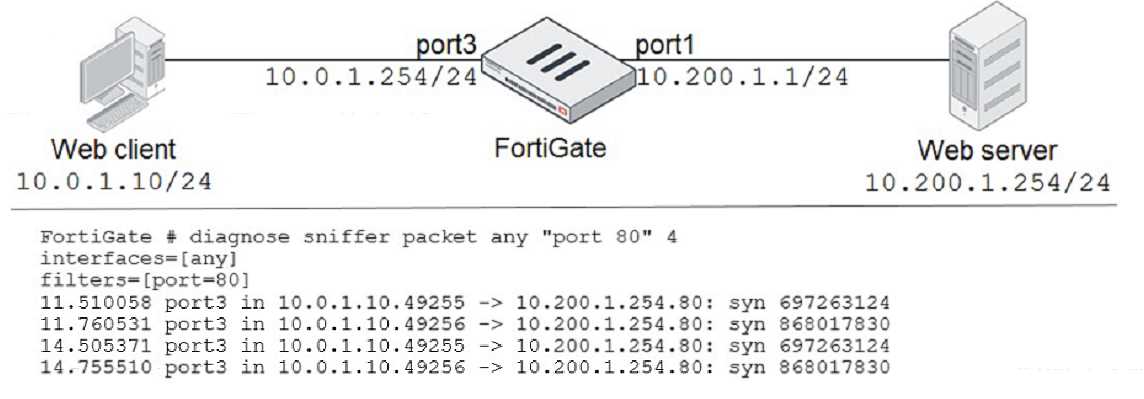 administrator runs the FortiGate built-in sniffer and gets the output as shown in the exhibit.