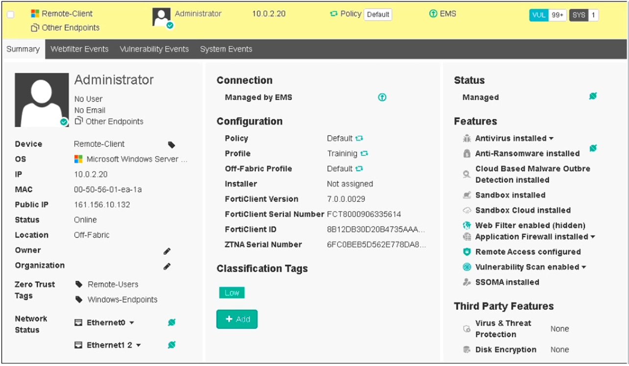 Refer to the exhibit, which shows the endpoint summary information on FortiClient EMS.
