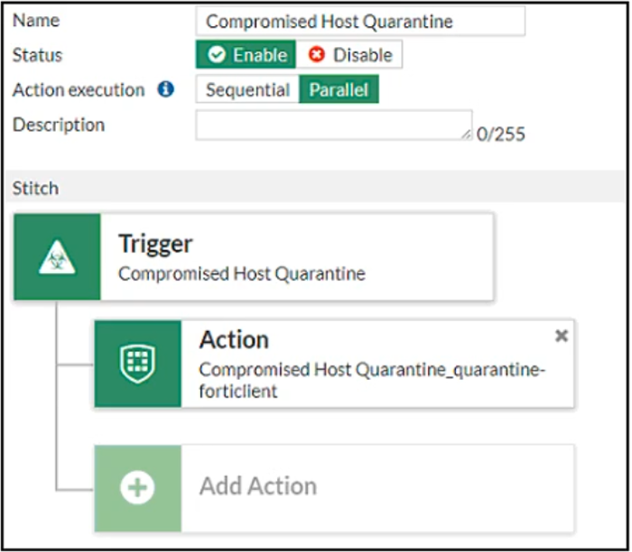 Based on the Security Fabric automation settings, what action will be taken on compromised endpoints?