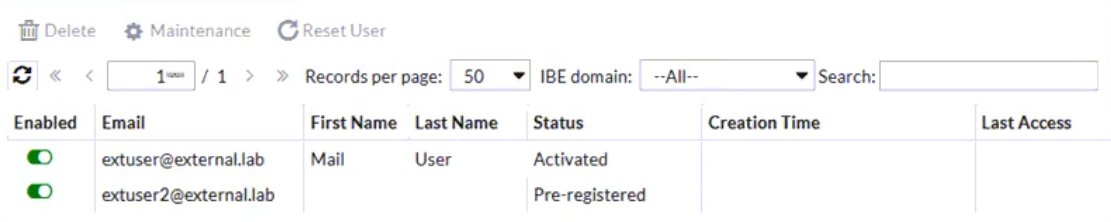 Refer to the exhibit which displays a list of IBE users on a FortiMail device.