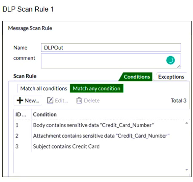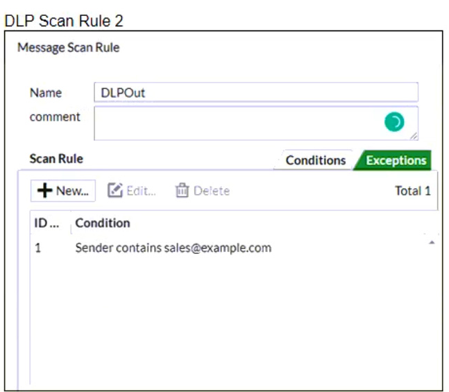 Refer to the exhibits which shows a DLP scan profile configuration (DLP Scan Rule 1 and DLP Scan Rule 2) from a FortiMail device.
