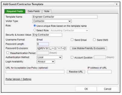 When a contractor account is created using this template, what value will be set in the accounts Rote