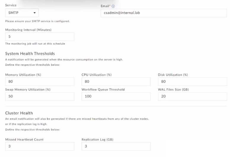 What are two different services that you can configure for monitoring system and cluster health