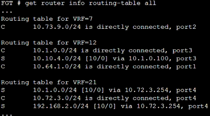 Refer to the exhibit, which shows a partial routing table. Assuming all the appropriate firewall policies are configured, what two changes would an administrator need to make if they wanted to send traffic from a client directly connected to port3, to a server directly connected to port4? (Choose two.)