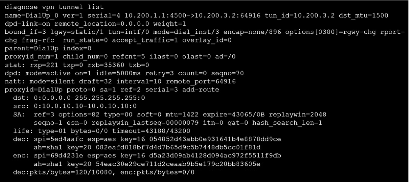 Refer to the exhibit, which contains the output of the diagnose vpn tunnel list. Which command will capture ESP traffic for the VPN named DialUp_0?