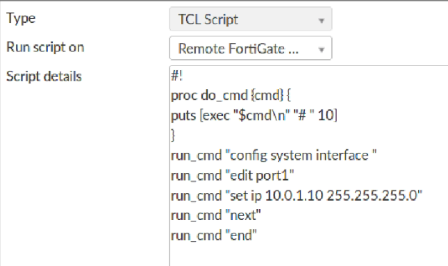 Refer to the exhibit, which contains a TCL script configuration on FortiManager.
