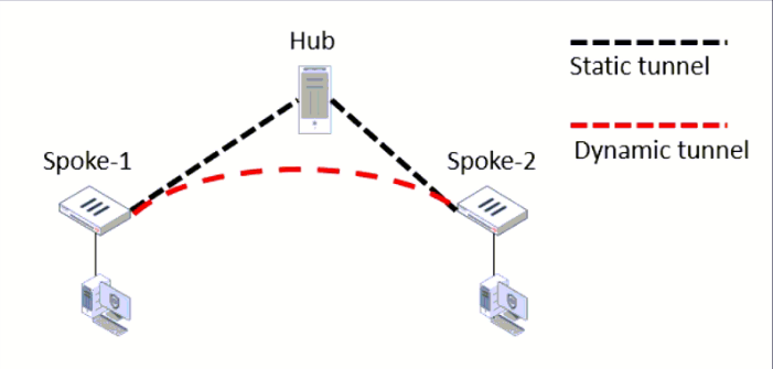The client behind Spoke-1 generates traffic to the device located behind Spoke-2.