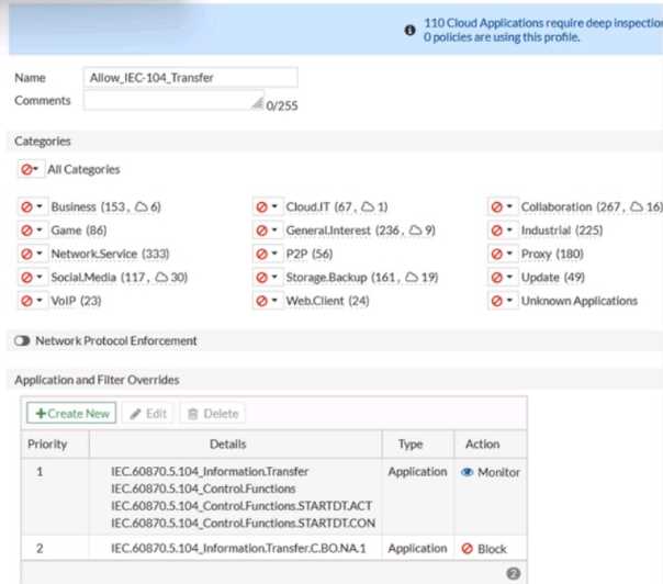 IEC.60870.5.104 Information.Transfer network protocol override. This way, the FortiGate unit will