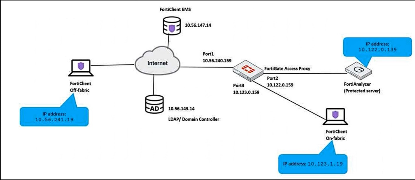 An administrator has to provide on-fabric clients with access to FortiAnalyzer using ZTNA tags.