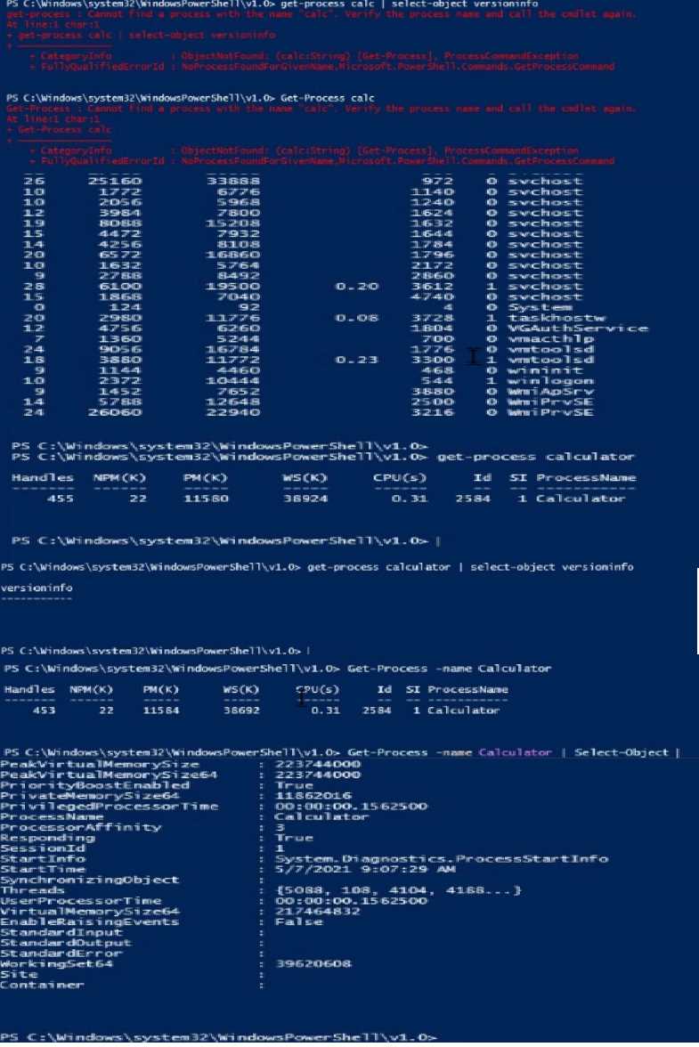 Launch Calculator (calc.exe). Using PowerShell, retrieve the Calculator Process Information. What is