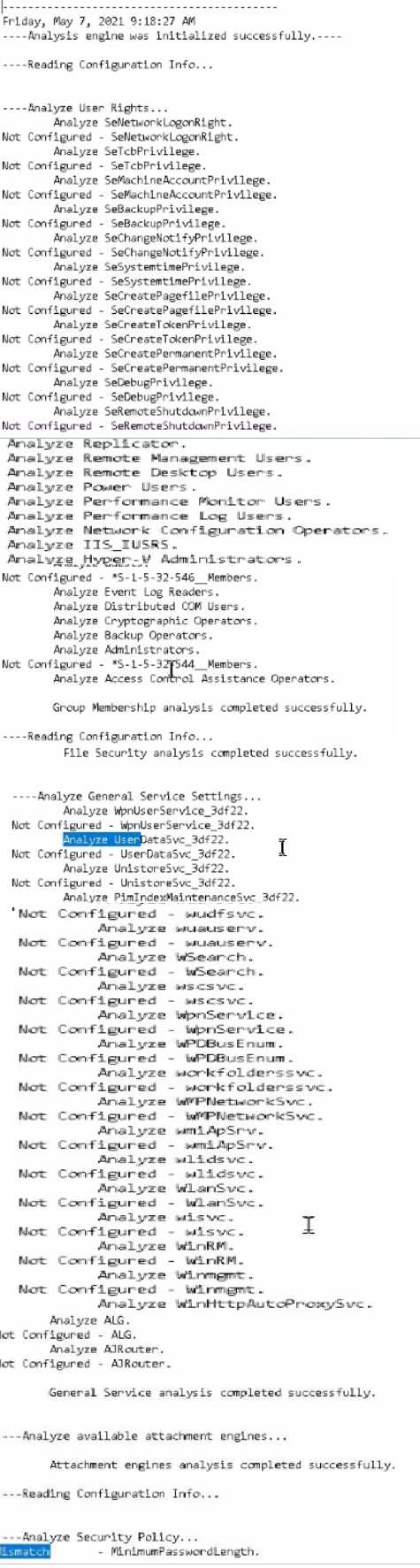 and uorkstdtionSecureTmplate.inf files, and output the findings to a file called log.txt. Which