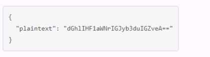 key, “plaintext”, and a value that is the base64-encoded string of the data to be encrypted.