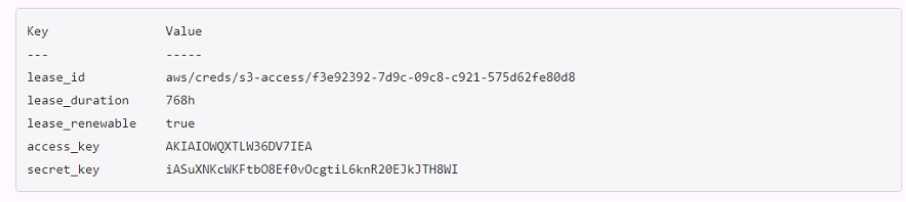 created using Vault's AWS secrets engine and the developer received the following output when