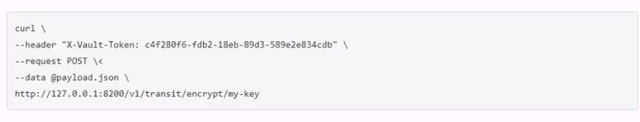 A user issues the following cURL command to encrypt data using the transit engine and the Vault AP: