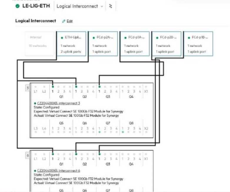 Refer to Exhibit: Your customer plans to update the firmware for the logical interconnect shown. Based on the information in the exhibit, which statement about network connectivity is true?