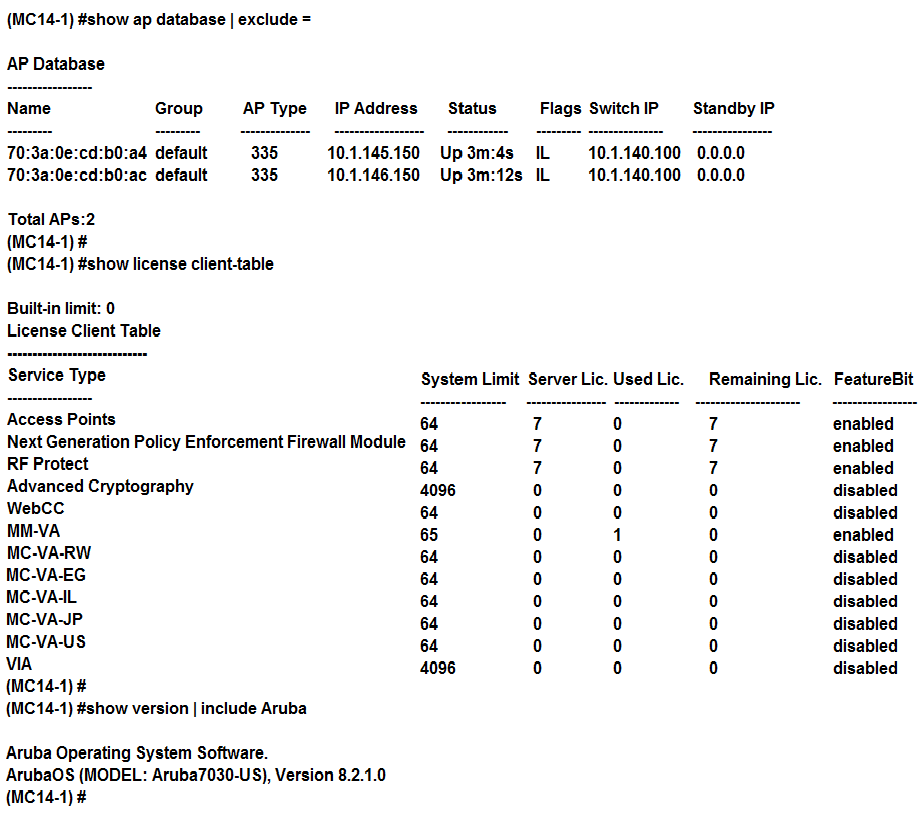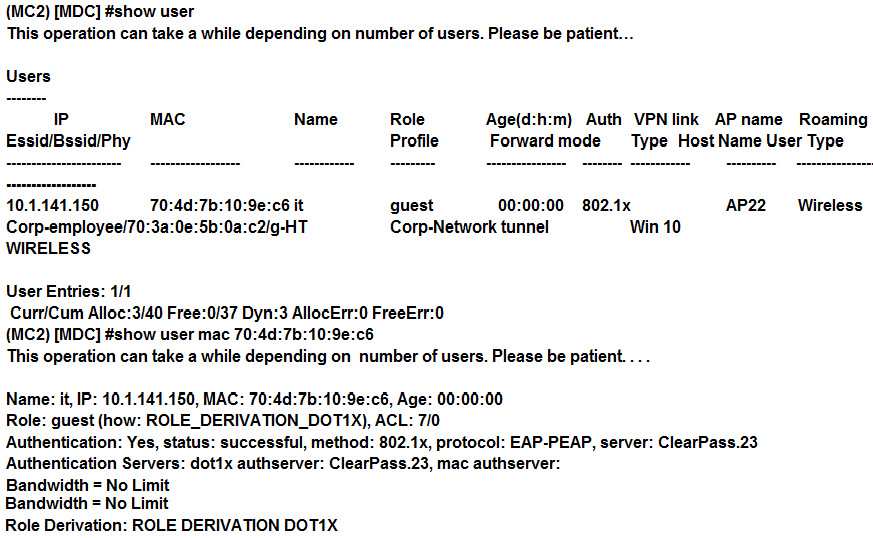 They access the Mobility Master (MM), and obtain the output shown in the exhibit.
