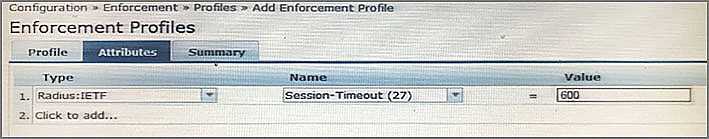 E. It will send the session –Timeout attribute in the RADIUS Access-Accept packet to the NAD and the NAD will end the user’s session after 600 seconds.
