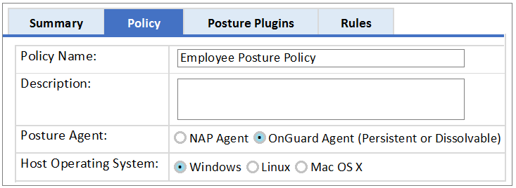 C. This Posture Policy can use either the persistent or dissolvable Onguard agent to obtain the statement of health.