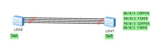 On the Network shown in the figure, two switches are connected through four links. COPPER