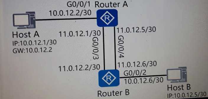 Router A : ip route-static 10.0.12.5 255.255.255.252 11.0.12.6