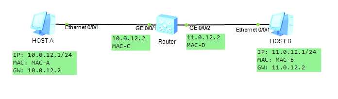Router B : ip route-static 0.0.0.0 0.0.0.0 11.0.12.1