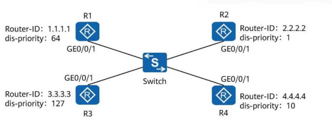 R4: Priority = 10, Router ID = 4.4.4.4