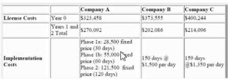 operation over the first three years. Which vendor or vendors meet that criterion?