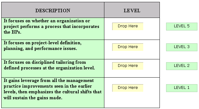 Drag and drop the various SSE-CMM levels at the appropriate places.