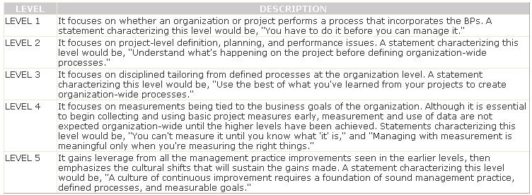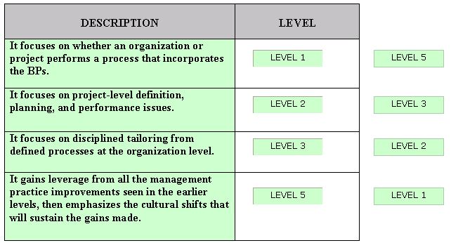 Explanation: The various SSE-CMM levels are described in the table below:
