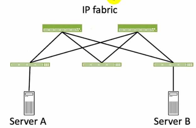 two servers, labeled as Server A and Server B. The IP fabric is a network architecture that uses a Clos