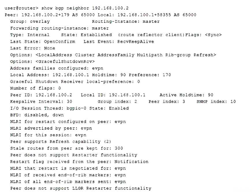 a neighbor with a router ID of 10.10.100.1 and a peer IP address of 10.10.30.1, and route 2 comes