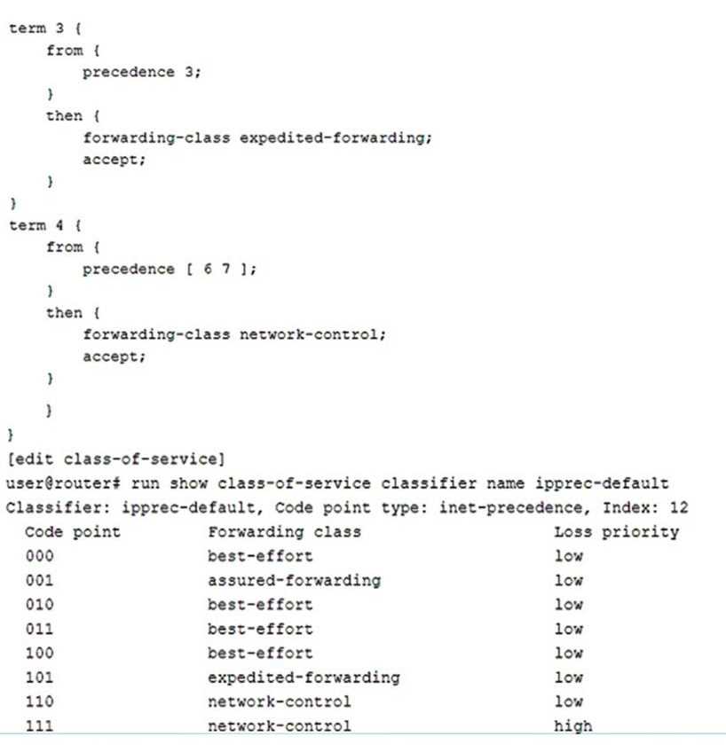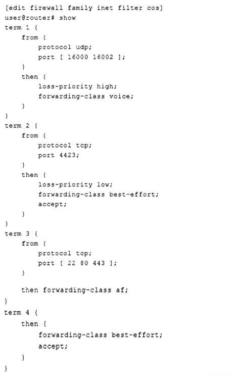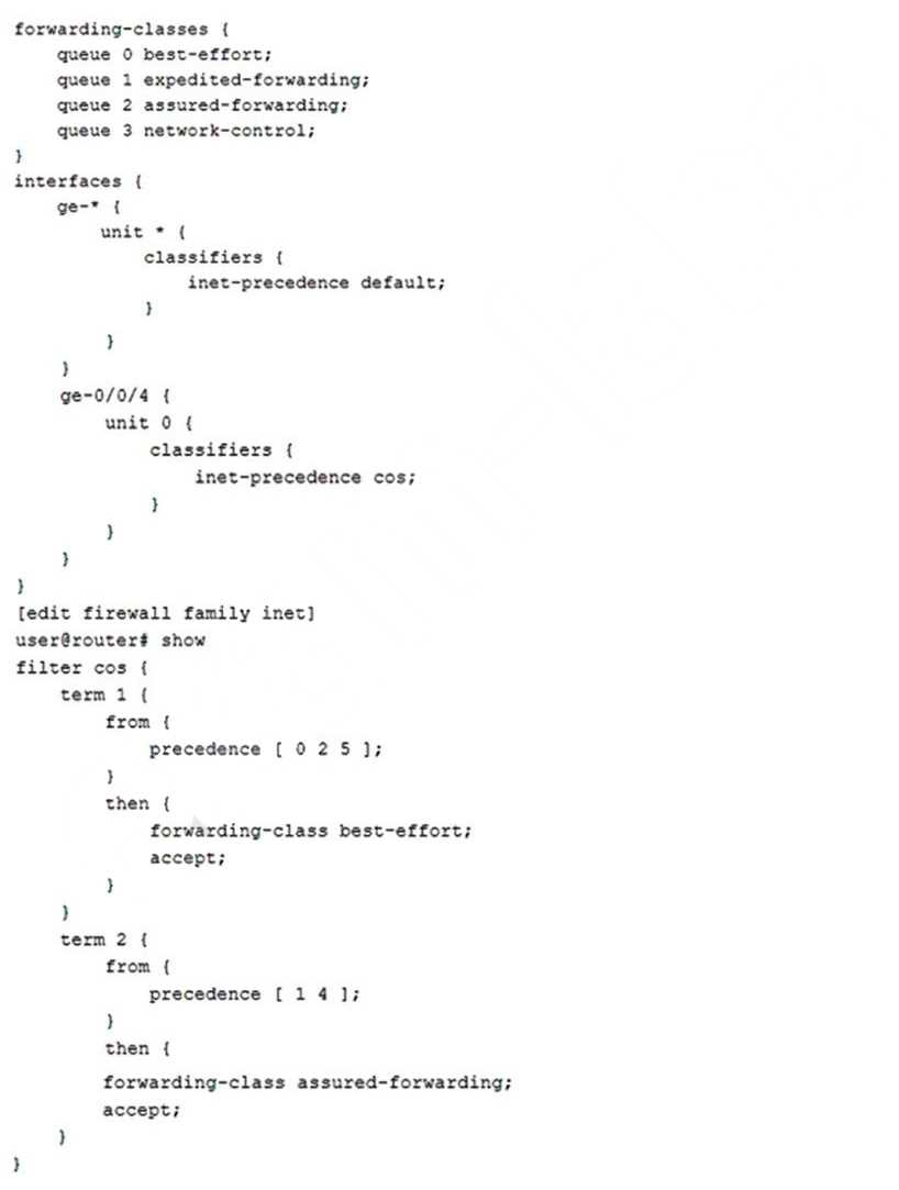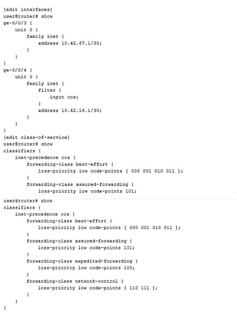 Referring to the exhibit, you have placed the cos multifield classifier on all edge interfaces and
