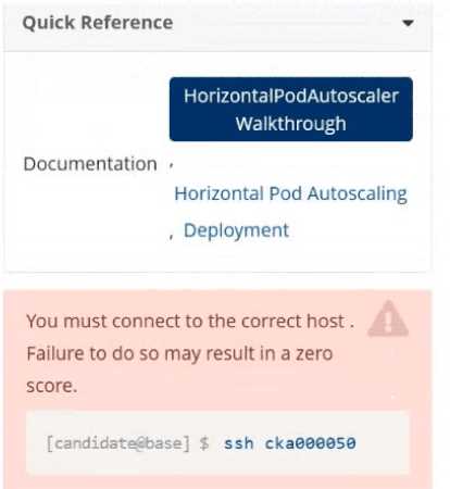 Set the HPA to aim for 50% CPU usage per Pod . Configure it to have at least 1 Pod and no more than