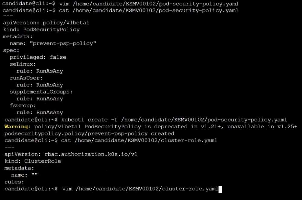 Create a new PodSecurityPolicy named prevent-psp-policy,which prevents the creation of privileged
