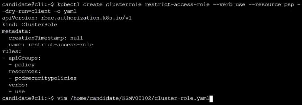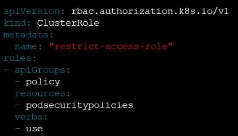 Create a new ClusterRole named restrict-access-role, which uses the newly created PodSecurityPolicy