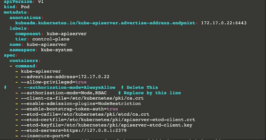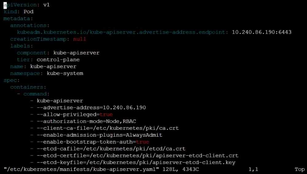 master1 $ vim /etc/kubernetes/manifests/kube-apiserver.yaml