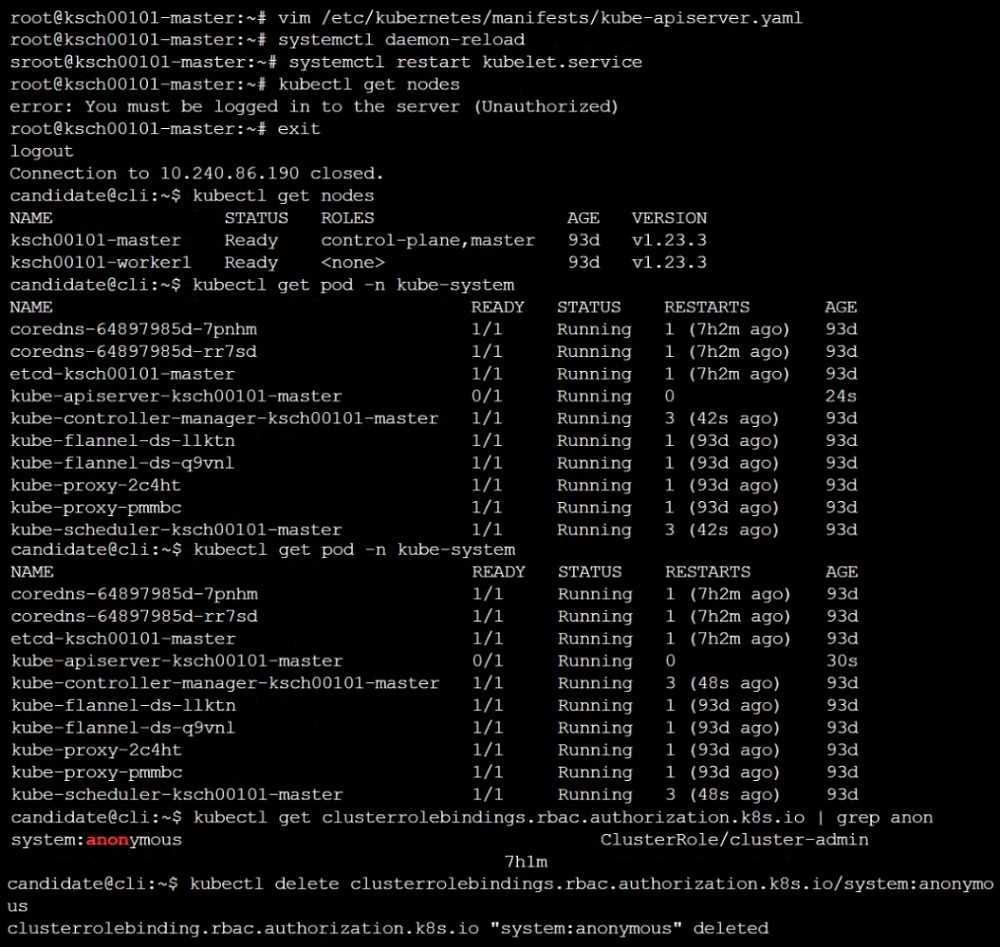 Reconfigure the cluster's Kubernetes API server to ensure that only authenticated and authorized