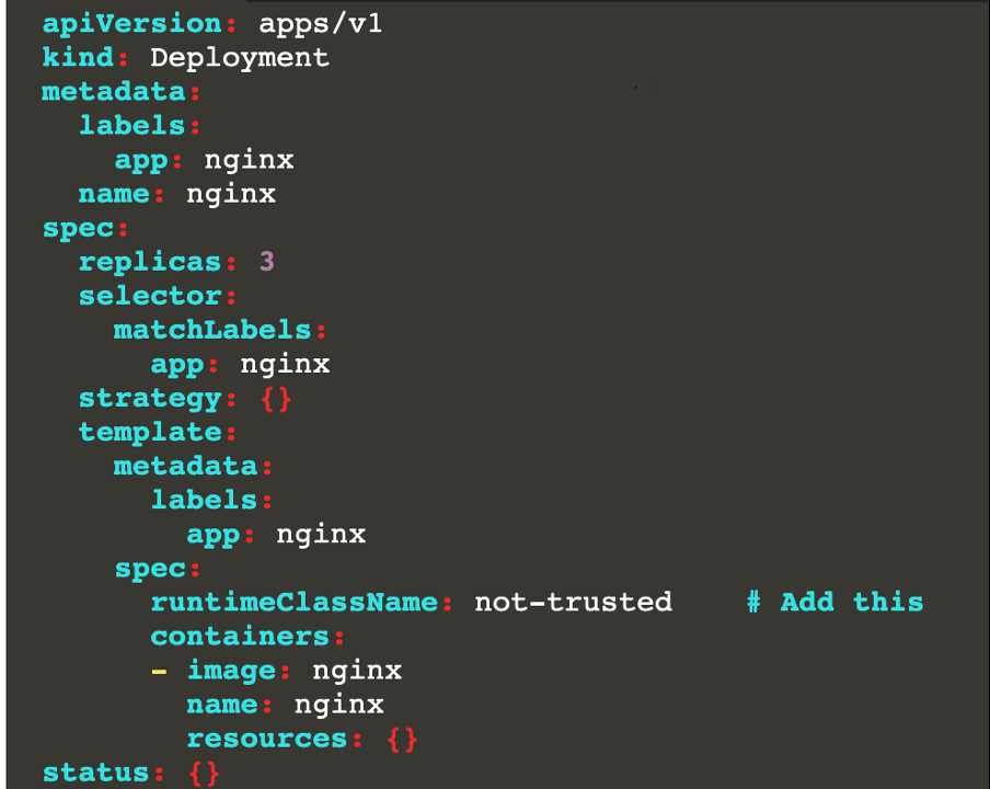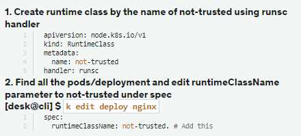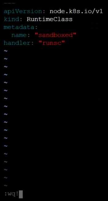 Create a RuntimeClass named sandboxed using the prepared runtime handler named runsc.