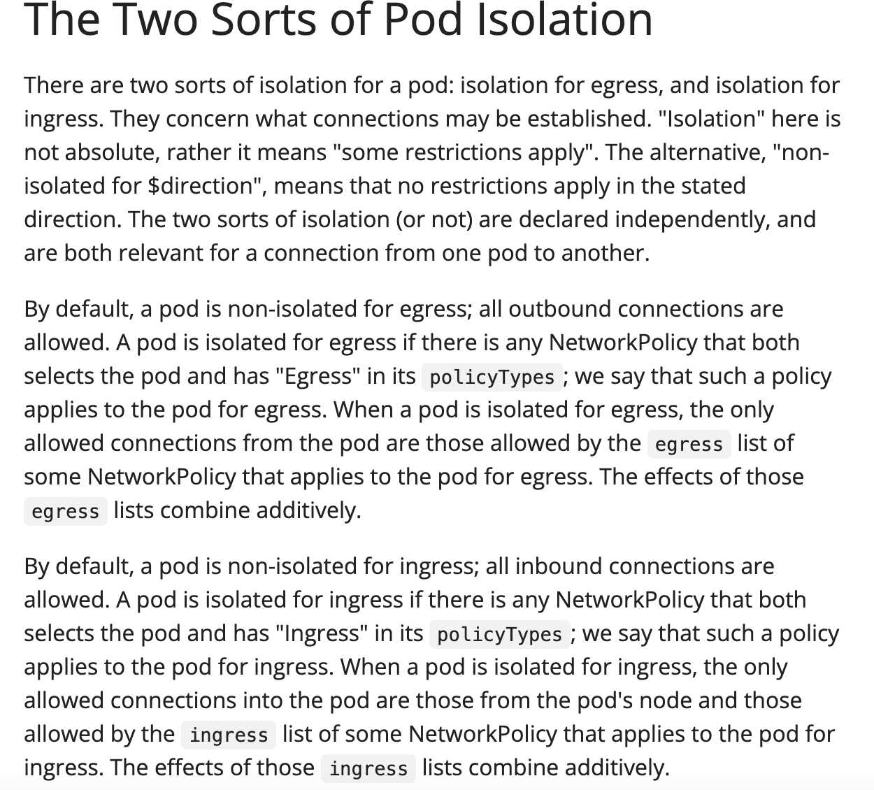 https://kubernetes.io/docs/concepts/services-networking/network-policies/#the-two-sorts-of-pod-