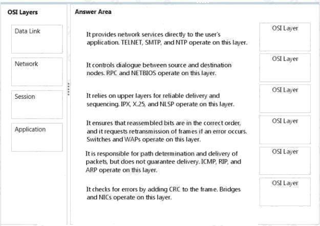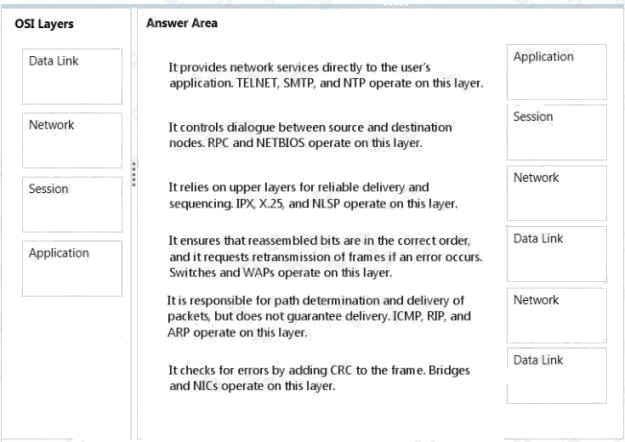 To answer, drag the appropriate OSI layer from the column on the left to its description on the right. Each OSI layer may be
