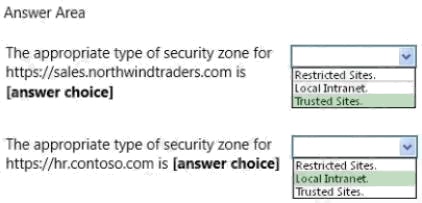 You are an intern for Contoso Ltd. Your supervisor asks you to configure the security zones for three new PCs so that they