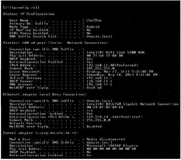 The Ethernet adapter is also DHCP enabled but has an APIPA IP address of 169.254.143.166.