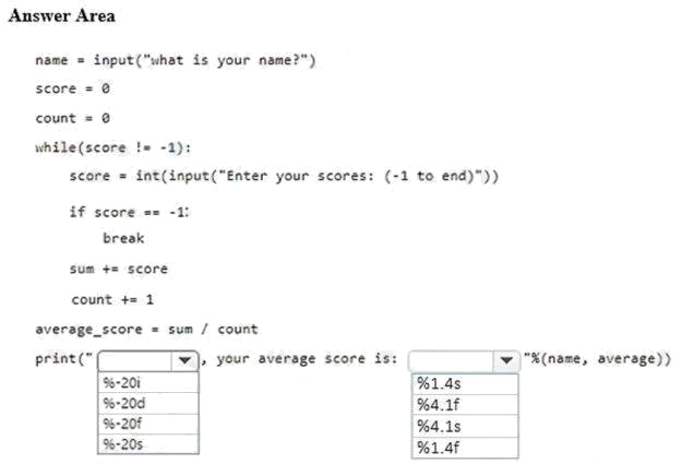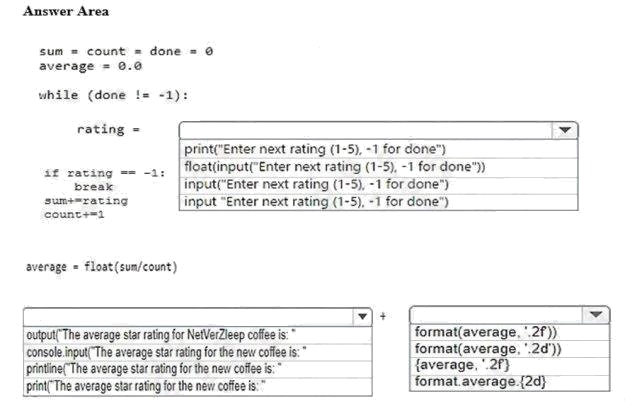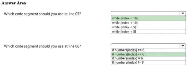 How should you complete the code? To answer, select the appropriate code segments in the answer area.
