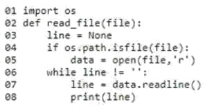 You are creating a function that reads a data file and prints each line of the file.