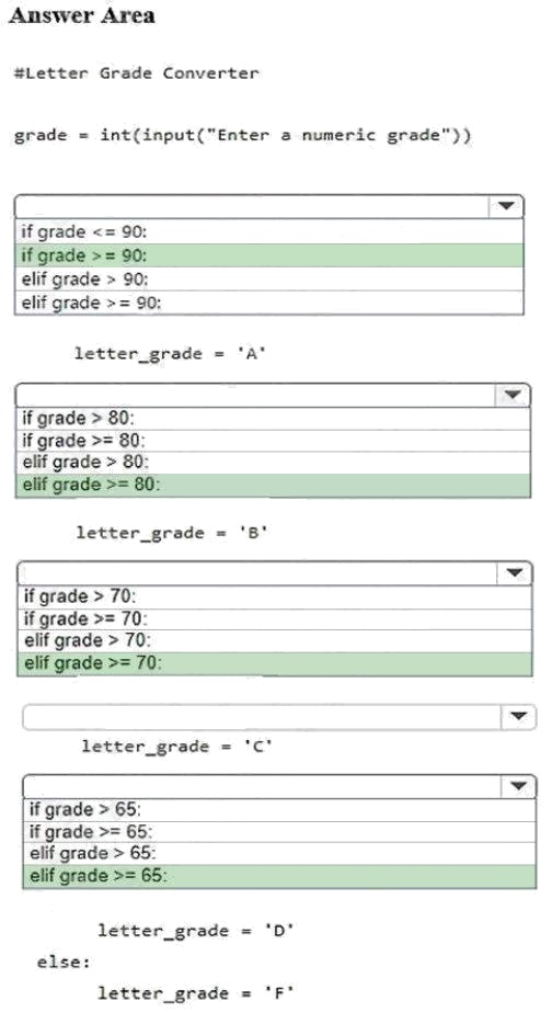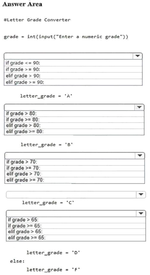 You are designing a decision structure to convert a students numeric grade to a letter grade. The program must assign a