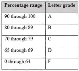 letter grade as specified in the following table:
