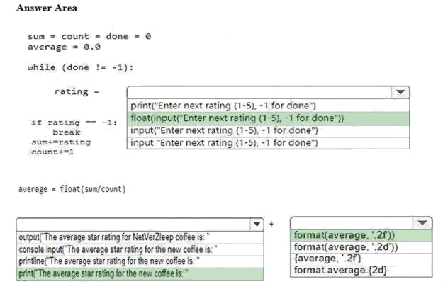 You are creating a Python program that employees can use to keep track of their average score.